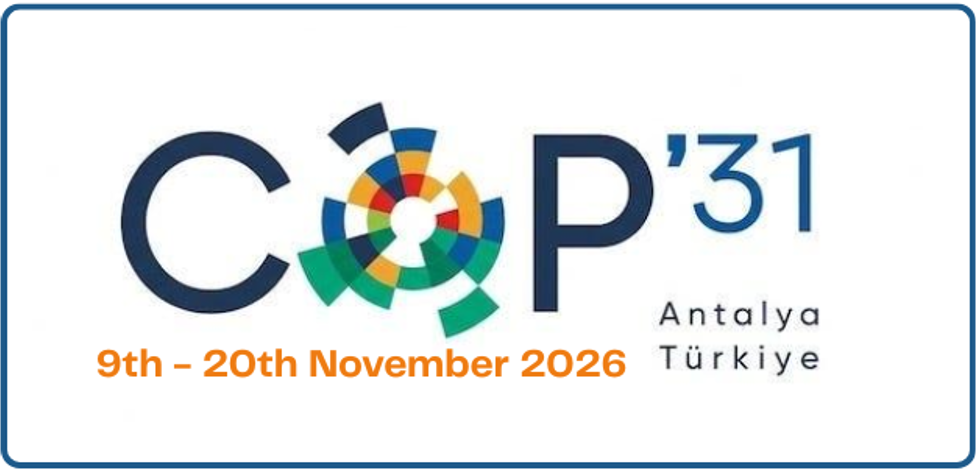 Conference of the Parties (COP31), Antalya, Türkiye, 9th to 20th November, 2026.